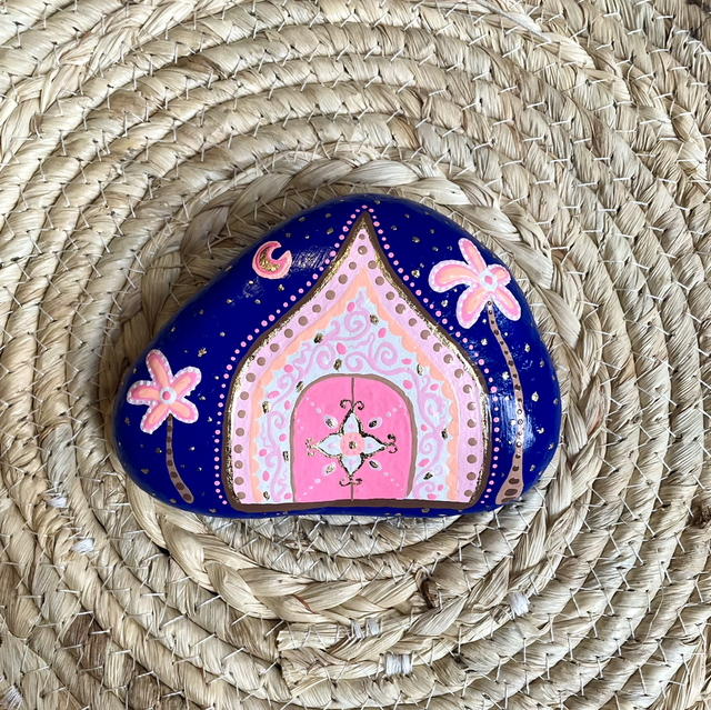 Galet minutieusement peint à l'acrylique et décoré de feuille d'or, aux énergies sacrées pour s'accompagner dans la traversée, l'ouverture de nos portes intérieures.. oser.. garder confiance et foi en la soi, en la Vie et sa magie .. franchir un cap, suivre l'élan de son coeur et de son âme qui sait là où nous sommes attendu.e.s pour vibrer plus fort ..