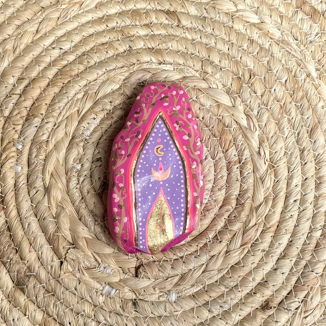Galet minutieusement peint à l'acrylique et décoré de feuille d'or, pour :